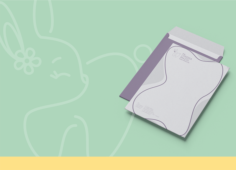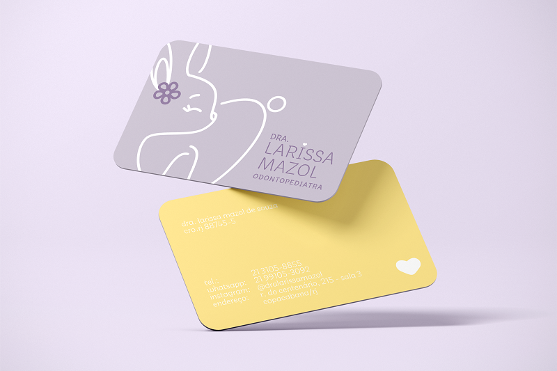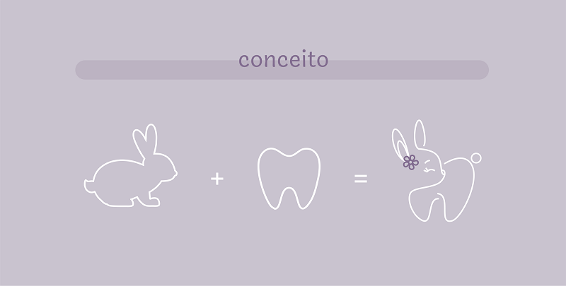 A Larissa é odontopediatra e nos pediu um logo que tivesse um dentinho de forma subliminar mas que também fosse fofo e delicado. Os coelhinhos são conhecidos por serem “dentuços” e pela força que eles tem nos dentes, por isso escolhemos esse animalzinho (que geralmente é a bem branquinho, assim como os dentes devem ser) para criar essa ideia lúdica nessa identidade visual.